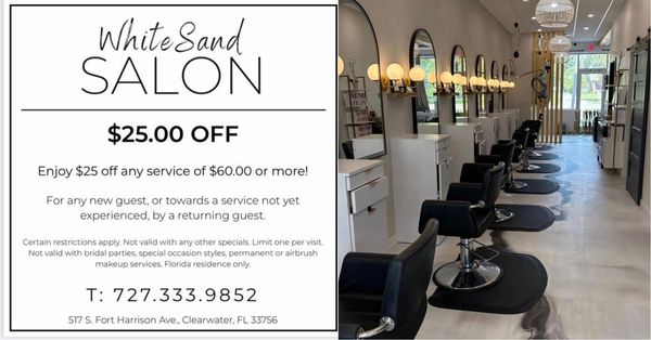 Formerly known as Sharmaine’s of Clearwater Beach, White Sand Salon brings the same trusted talent and beachy elegance you’ve always loved—now in a fresh, modern location in Clearwater.